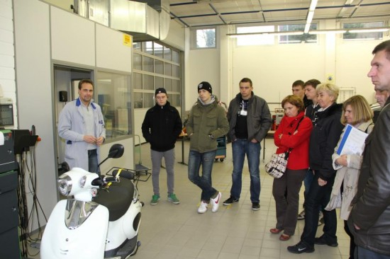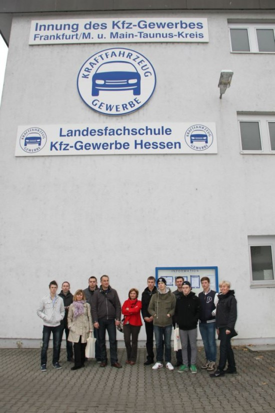 Prvi partnerski sastanak održan je u Frankfurtu od 17. do 21. studenog 2012. godine. Na stručno putovanje putovalo je šest nastavnika i šest učenika Škole uključenih u projekt. U Frankfurtu nam je domaćin bio Hrvatski gospodarski savez na čelu s predsjednikom Marijem Šuškom. Stručno putovanje je bilo iznimno dobro organizirano, a program zgusnut, ali zanimljiv. Tijekom boravka u Frankfurtu posjetili smo tvornicu Opel gdje smo se upoznali s trendovima razvoja električnih automobila u Europi i svijetu, nastojanjima Opela da se uključi u razvoj i serijsku proizvodnju električnih automobila te nam je predstavljen hibridni automobil Opel Ampera. Osim toga, u Frankfurtu smo posjetili Europski centar za istraživanje i razvoj vozila Hyundai – KIA gdje smo imali priliku vidjeti suvremene metode testiranja vozila u najekstremnijim uvjetima. Iznimno nam je zanimljiv bio posjet strukovnoj školi koja obrazuje učenike za zanimanja vezana uz vozila gdje smo imali priliku vidjeti, i još jednom potvrditi, da hrvatsko strukovno obrazovanje zaostaje u praktičnom dijelu obrazovanja učenika. Nakon posjeta strukovnoj školi, posjetili smo Klassikstadt u Frankfurtu u kojem smo imali prilike uživo vidjeti prvi sportski automobil na električni pogon Tesla te od strane predstavnika tvrtke Mainova bili upoznati s njemačkim iskustvima u području e-mobilnosti. Uz stručne sadržaje u prenatrpani raspored uspjeli smo „ugurati“ i obilazak užeg središta Frankfurta tako da smo bogate stručne dojmove upotpunili i onim turističkim.