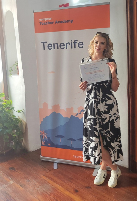 Erasmus + projektne aktivnosti STEP 4 nastavljamo na vulkanskom otoku. Profesorica Jasmina Stamenić sudjelovanjem na edukacijskom tečaju “Design the Positive: Positive Thinking, Positive Communication and Positive School Spaces” predstavila je našu školu kolegama iz različitih zemalja na Tenerifeu i uspostavila odnose za buduće suradnje. Edukacija je uključivala praktične radionice radi unaprjeđenja pozitivnog pristupa školi i obrazovanju. Poseban naglasak stavljen je na pozitivnu komunikaciju s ciljem stvaranja učinkovitijeg kruga pozitivnih odnosa. Temeljem usvojenih znanja sudionici su osmislili projekte primjenjive u svojim školama, s naglaskom na razvijanje ugodnog i motivirajućeg okruženja unutar i izvan učionice te poticanje pozitivnih odnosa u školskoj zajednici.