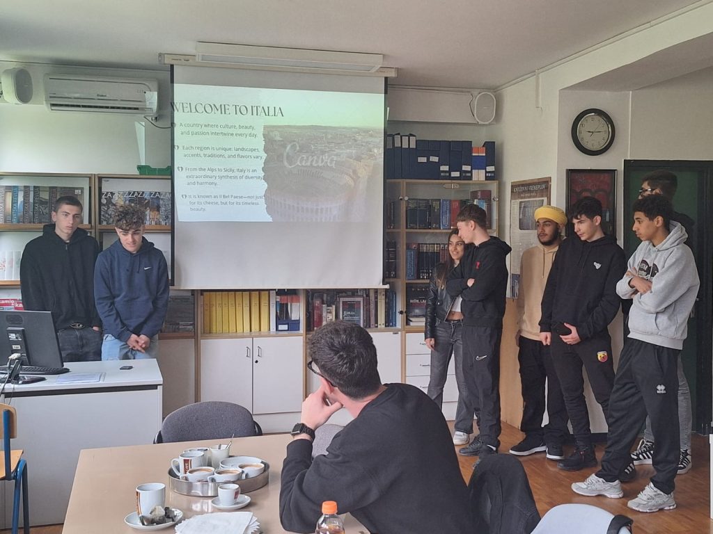 Nastavnici Barbara Spotti, Francesca Cella, Vito Lombardo i 8 učenika tehničke struke iz Fidenze, Italija, danas su posjetili našu školu. U školskoj knjižnici učenici Ivan Jurinović i Šimun Gerovac iz 4.a razreda predstavili su našu zemlju, grad Zagreb i našu školu, a talijanski učenici predstavili su svoju školu. Nakon upoznavanja i predstavljanja učenici su razgledali školske praktikume i poligon na kojem su mogli vidjeti kako se izvode poligonske radnje.
